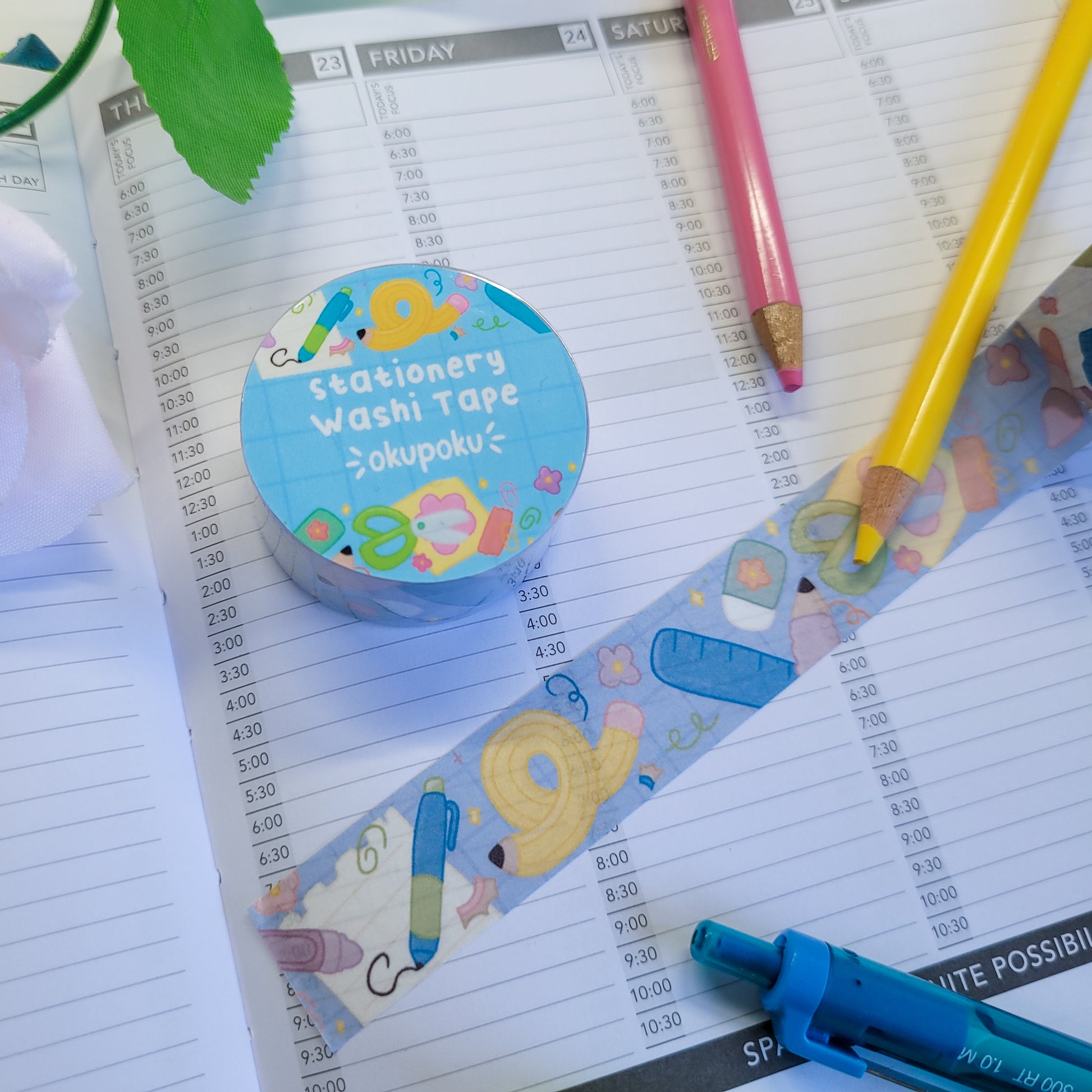 The cutesy Stationery themed washi tape is perfect for making beautiful bullet journal spreads, scrapbooking or to jazz up any notebook or gift.