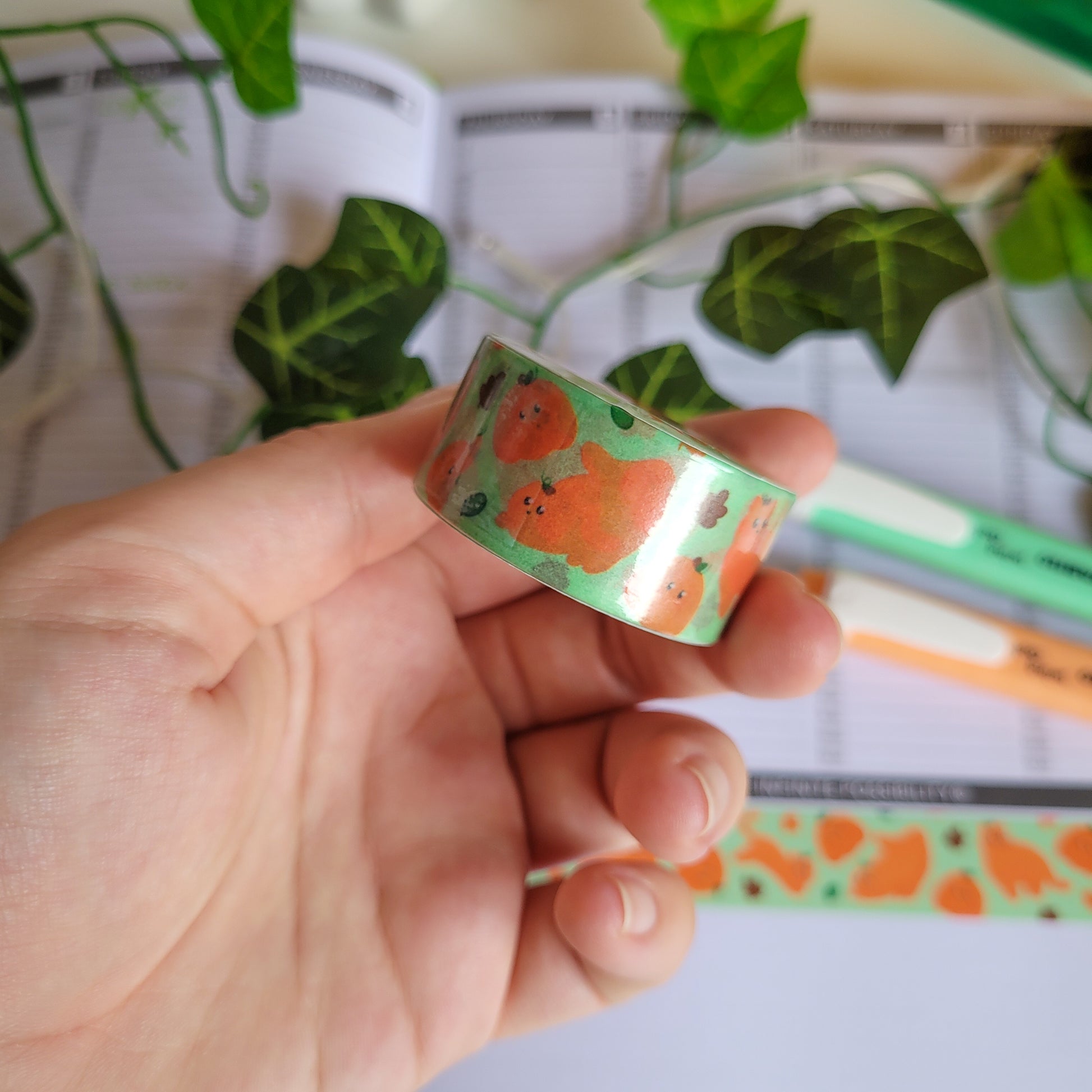 The cutesy pumpkin cat washi tape is perfect for making beautiful bullet journal spreads, scrapbooking or to jazz up any notebook or gift.